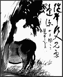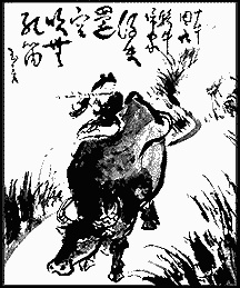 Schrijlings op de os, kom ik thuis. Ik ben kalm. Ook de os mag rusten.