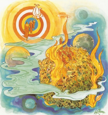 Zo begon de Boeddha zijn verheven missie die hij tot aan het einde van zijn leven volhield. Met zijn discipelen liep hij over de hoofdwegen en binnenwegen van Jambudipa, het land van de Roos-Appel (een andere naam voor India) omgeven door de aura van zijn grenzeloze mededogen en wijsheid.
