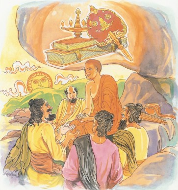 "Om de Dhamma te horen, Eerwaarde." -- "Maar jullie hebben de Dhamma al gehoord." -- "Eerwaarde, eerst gingen wij naar de Eerwaarde Revata, maar hij had ons niets te zeggen; boos op hem, benaderden wij de Eerwaarde Sariputta, en die zette de Abhidhamma in haar volle lengte voor ons uiteen, maar wij waren niet bekwaam deze redevoering te begrijpen. Boos op hem, benaderden wij de Eerwaarde Ananda. Echter, Eerwaarde Ananda, hoe het ook zij, zette voor ons de Dhamma wel erg kort uiteen, waarop wij ook boos op hem werden. Zodoende zijn wij hier naar toe gekomen."