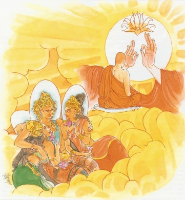 Boeddha's die voor verzaking en een meditatief leven kiezen, worden zelfs door de goden (deva's) vereerd. |