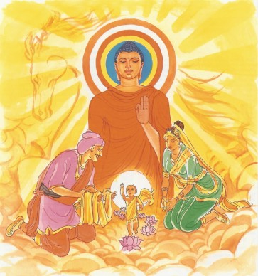 Zoek je toevlucht in de Boeddha, de Dhamma en de Sangha en komt tot volledig begrip van de Vier Edele Waarheden. |