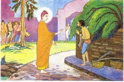 Zo was er een zekere Sunita die een vuilnisman was en (in de ogen van de mensen) geboren was in de zogenaamde kaste van de uitgestotenen. Mensen keken erg op hem neer. Zij hadden zoveel eigendunk, dat wanneer hun schaduw op Sunita viel, ze hem schopten en sloegen tot bloedens toe. Maar op een dag ontmoette hij de Boeddha die op dat moment zijn bedelronde deed. Zijn vredige uitstraling en de vriendelijkheid van de Boeddha maakte een enorme indruk op Sunita. Nog nooit was iemand zo vriendelijk voor hem geweest. Toen de Boeddha hem vroeg of hij monnik wilde worden en hij de wereld waarin hij verkeerde wilde verlaten, maakte Sunita daar direct gebruik van. Ze namen hem mee naar de tempel waar hij werd ingewijd. Net zoals anderen, kreeg hij een monnikengewaad waardoor het vernederende kastensysteem voor hem ophield te bestaan.